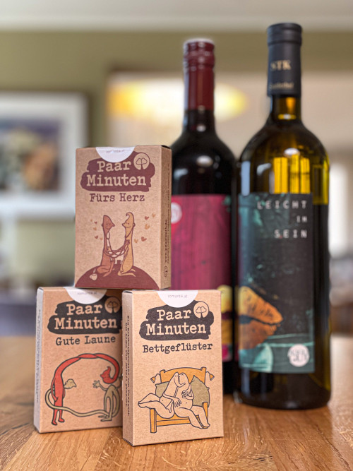 Paar.Minuten Kartenset & Flaschen-Duo Wein