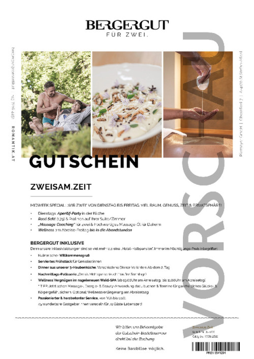 Gutschein für Nächtigungen